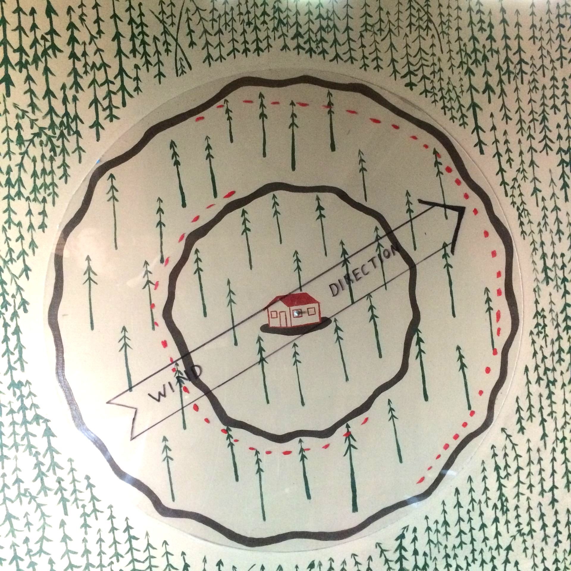 A small plastic base board with a Universal Blueprint on it. Atop the tiny picture is a clear plastic disk with a wind arrow and 2 semi-circles of fire attached to the arrow. A rivet attaches the center of the arrow right over the little house, so the disk and arrow spins freely. To use the device to show the mitigator, where to lay fire, stand in front of the thing you want to survive the oncoming fire storm. Hold the Wizz Wheel on the horizontal. Next orientate the wind arrow so that it is in harmony with the on site wind. The little semi-circles of fire will line up in front of the outer Circular Dragon Ring and outside the middle Dragon Ring, The Wizz Wheel shows exactly where to lay fire on the ground out on the real Blueprint in the real world. The wind will blow, the just ignited flames into the Dragon Rings and go out. The mitigator keeps stripping larger and larger bites of ground fuel until the entire ground between the two outer Dragon Rings is all BLACK. The Smokejumpers first using/testing this scheme called the procedure the Black Donut of death, To reduce loss we will have to make this a common habit.